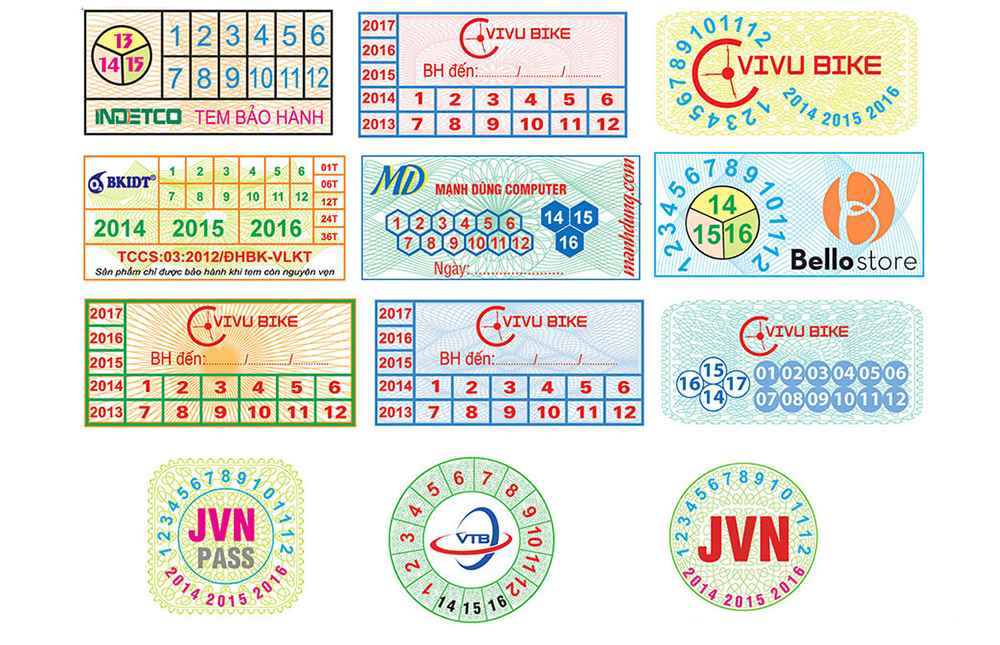 In tem nhãn decal (chất liệu decal giấy, decal nhựa) bằng mực in UV, chống phai màu, bền đẹp với thời gian, thích hợp để làm nhãn phụ, tem logo công ty, tem gara ô tô và dán trên các thiết bị đặt ở môi trường khắc nghiệt